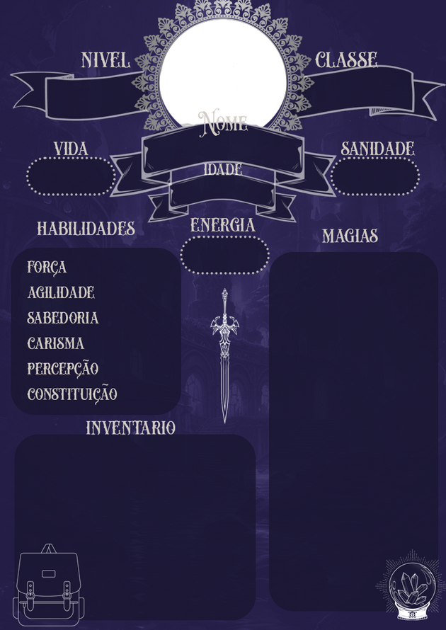 Preencha a ficha abaixo com as informações do seu personagem. Você também pode fazer o download aqui.
